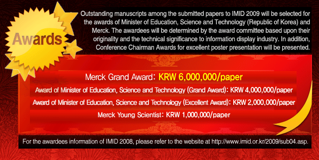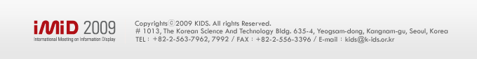 The 9th International Meeting on Information Display (IMID 2009), it is great honor and pleasure to invite you to the conference, which will be held at KINTEX, Seoul, Korea during October 12 ~ 16, 2009. |