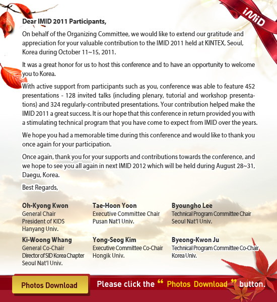 Presentation Materials Submission Due: 16:00 (GMT+09:00), August 5, 2011(Only for the Applicants of Awards)