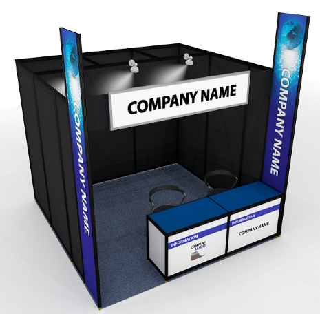 - 3m (W) x 3m (L) x 2.5m (H) - Place on upper part of signboard - 2 Information Desk / 2 chair - Lighting and 1KW of Power for 1 Booth |