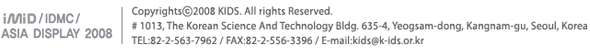 Your contribution to the IMID/IDMC/ASIA DISPLAY 2008 will certainly make the conference a successful event. We anticipate your participation for the event. For further information about the conference, please feel free to contact us at: