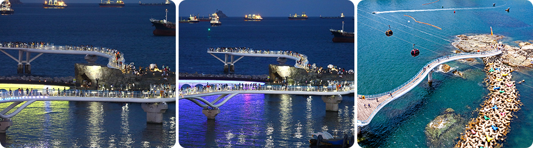 Located at the upper station of the Songdo Marine Cable Car, Songdo Sky Park is a relaxing complex featuring photo zones, cafés, and viewing decks. Capture unforgettable moments with the ocean as your backdrop and enjoy the beautiful coastal scenery.