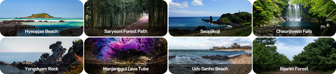Jeju Island is a unique place worldwide, holding the honors of the natural science area such as UNESCO World Biosphere Reserve [2002], UNESCO World Natural Heritage Site [2007] and UNESCO World Geoparks Network [2010]. Jeju Island also consists of all elements for global natural sight theme, including island, volcano, waterfall, beaches, national park, cave and forest.