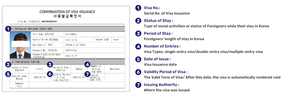※ Starting July 1st 2020, The Embassy of the Republic of Korea (ROK) issues a Confirmation of Visa Issuance in place of a visa label as an entry permit into Korea.